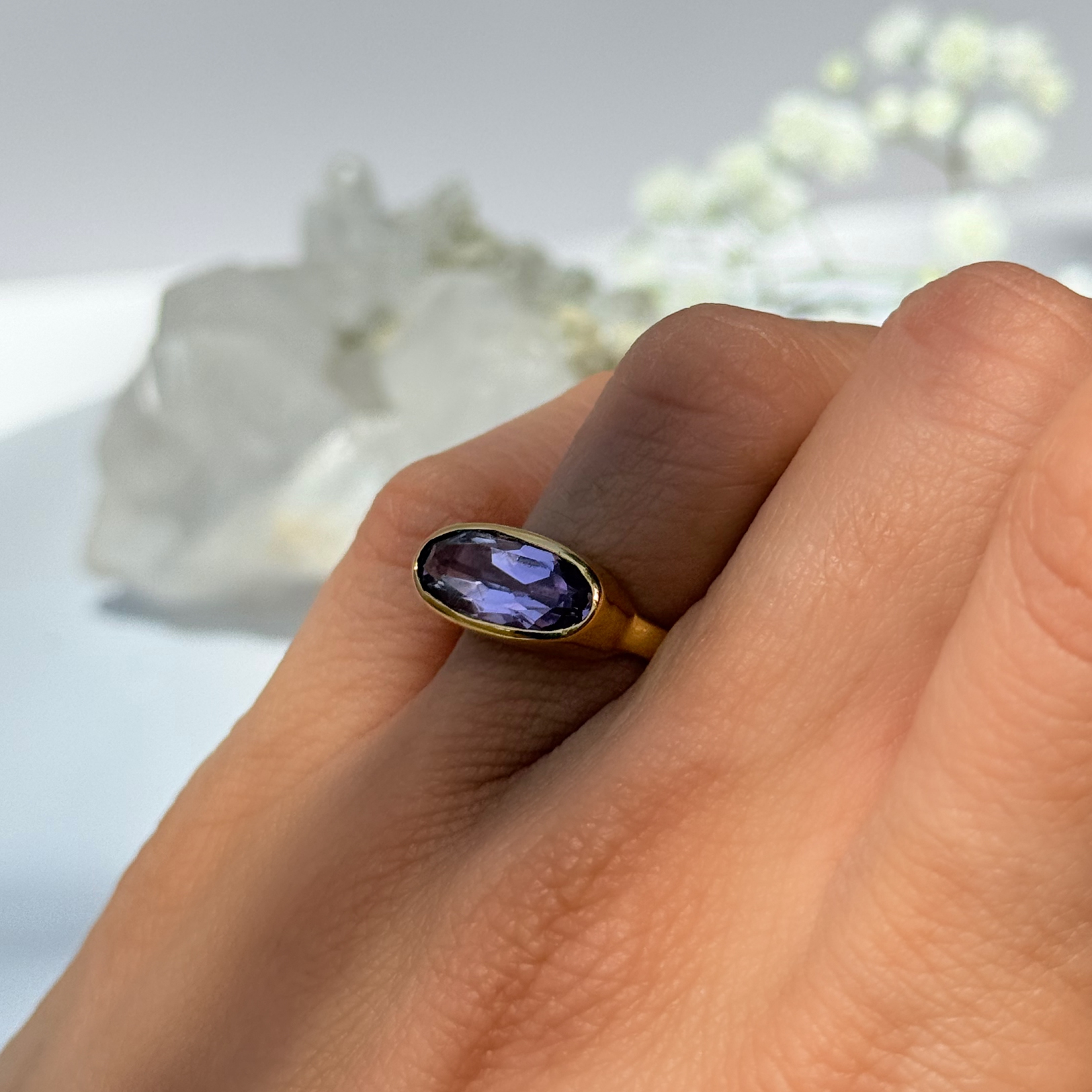 טבעת כסף בציפוי זהב 2 מיקרון משובצת אמטיסט