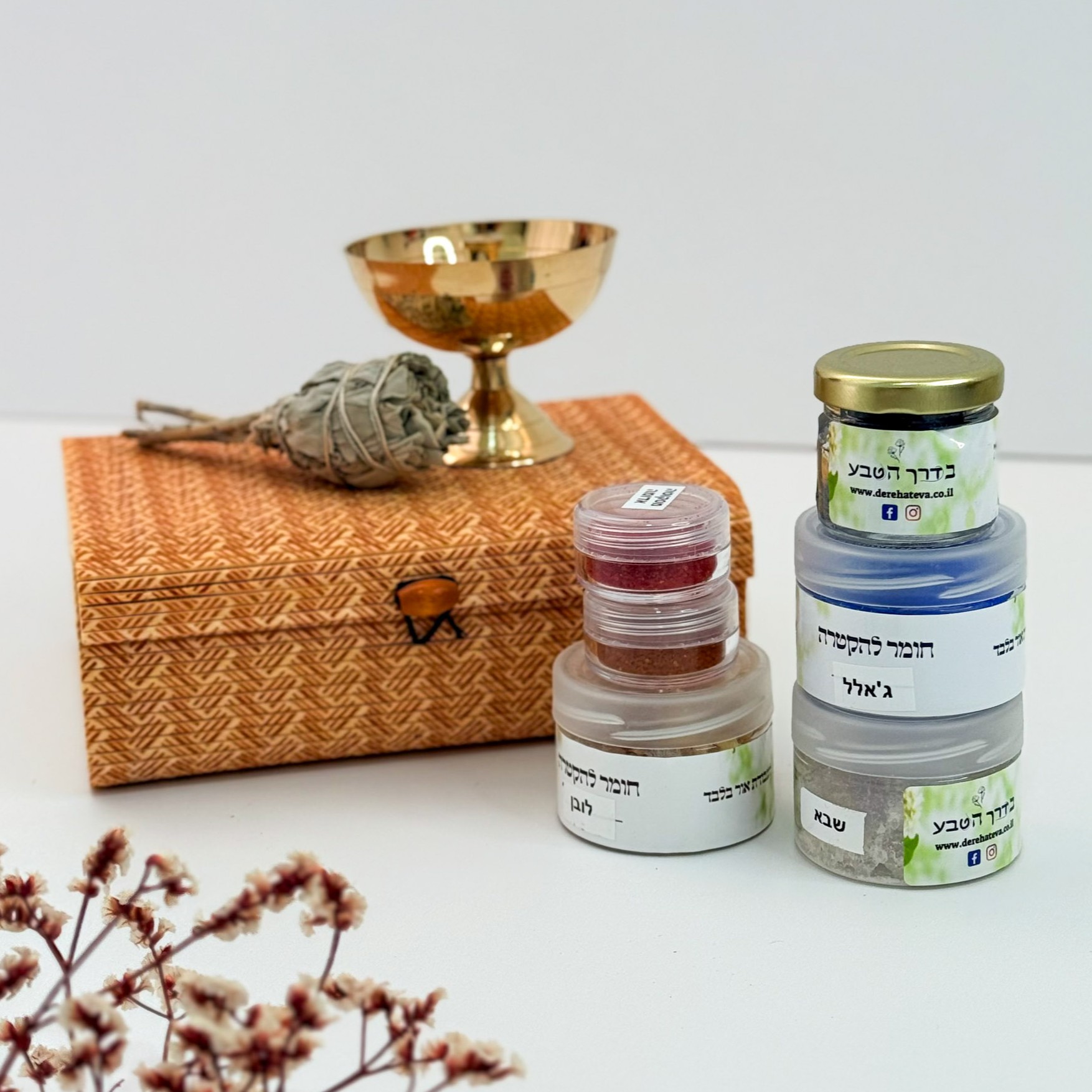 מארז טיהור בקופסת עץ המכיל בתוכו: