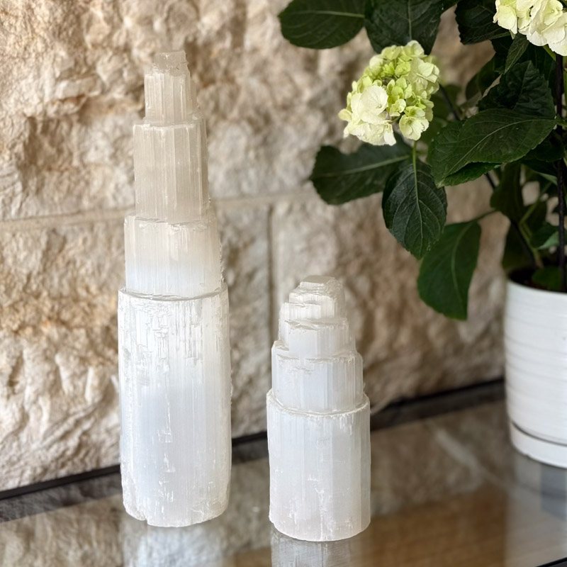סלנייט (Selenite)- אבן הסלנייט היא אבן של אור, ניקיון ובהירות. האנרגיה שלה עדינה אך עוצמתית, והיא מזוהה עם ניקוי אנרגטי, פתיחת זרימה ויצירת תחושת שקט והרמוניה במרחב. סלנייט עוזרת לטהר עומסים רגשיים ומחשבתיים, מחזקת בהירות פנימית ותומכת בחיבור לאינטואיציה ולרוגע עמוק. זו אבן שלא “עובדת בכוח”, אלא מזכירה בעדינות איך זה מרגיש כשיש אור, סדר ונשימה פתוחה, ולכן היא מתאימה במיוחד לבית, לפינות מנוחה ולחללים שמבקשים אנרגיה נקייה ומרוממת. * אסור לשטוף במים.