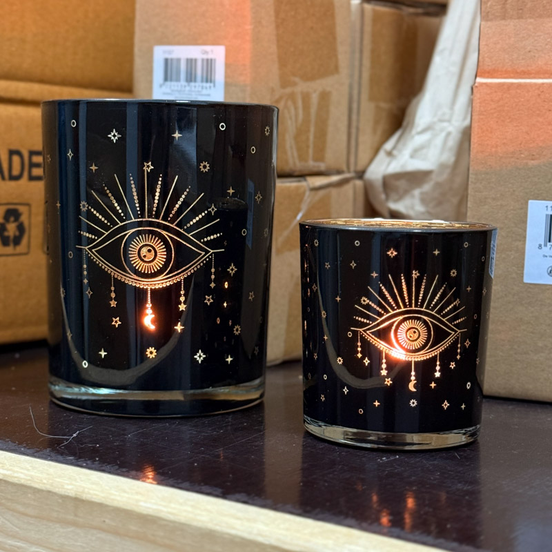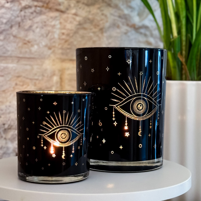 פמוט מעוצב בצבע שחור עם עין שמעניקה לפמוט עדינות אך עם זאת הוא בעל נוכחות מרגשת כאשר הוא דולק.