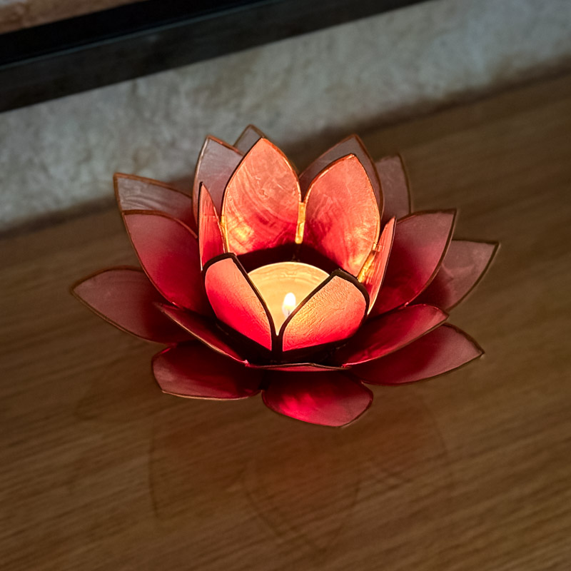 פרח הלוטוס, הפורח מעל פני המים אחרי שצמח מבוץ, הוא תזכורת יפה לכך שכל התחלה נוצרת מתוך עומק. כאשר הנר נדלק בתוכו, נוצר משחק קסום של אור וצבע שמזכיר, שהיופי האמיתי נובע מבפנים.
