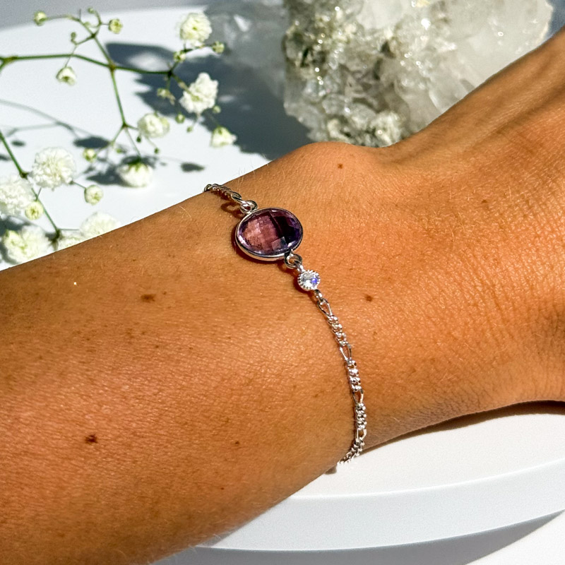 במרכזו אמטיסט עגול, בגוון סגול־חלומי שמזמין ריכוז, שלווה וחיבור לעולם הפנימי.