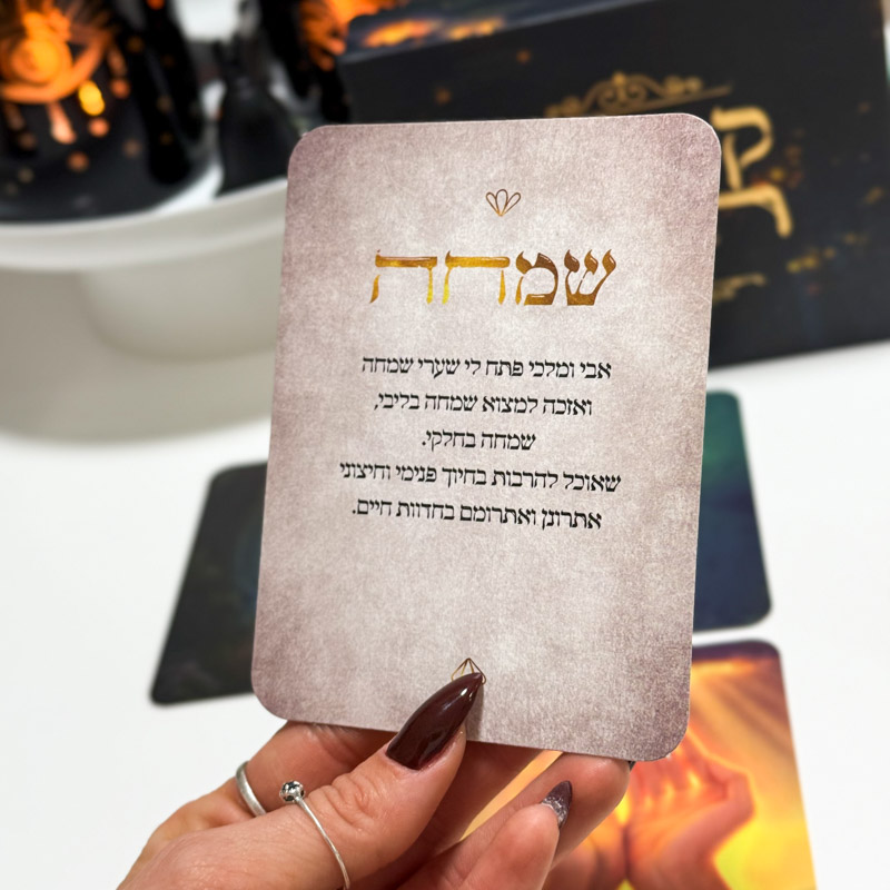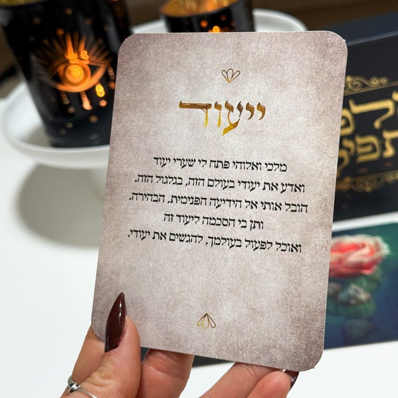 כל קלף מביא תפילה אישית ומדויקת שנוגעת בלב, מרגיעה ומכניסה לחיים כוונה ובהירות.